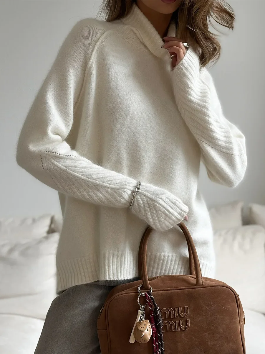 Blubelle Women's Trendy Casual Outwear Autumn Winter Long Sleeve Turtleneck Knit Pullover Sweater Loose Fit Woven Weave